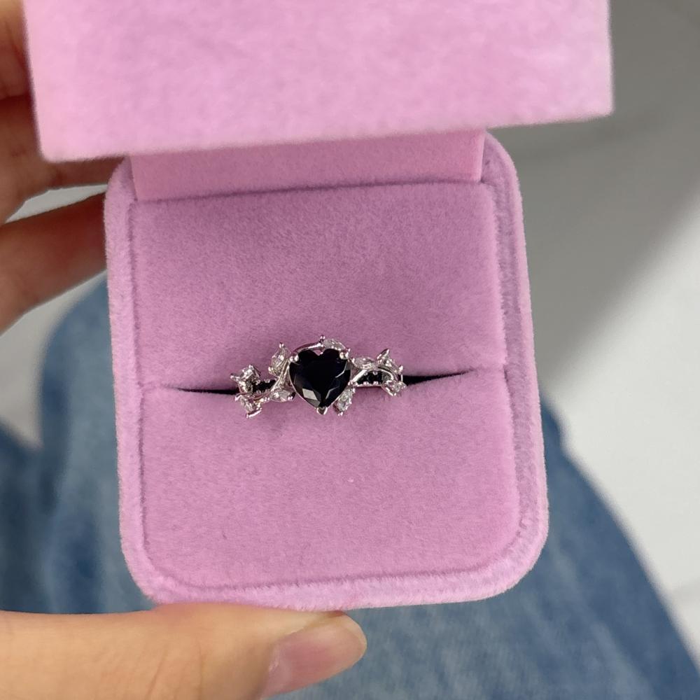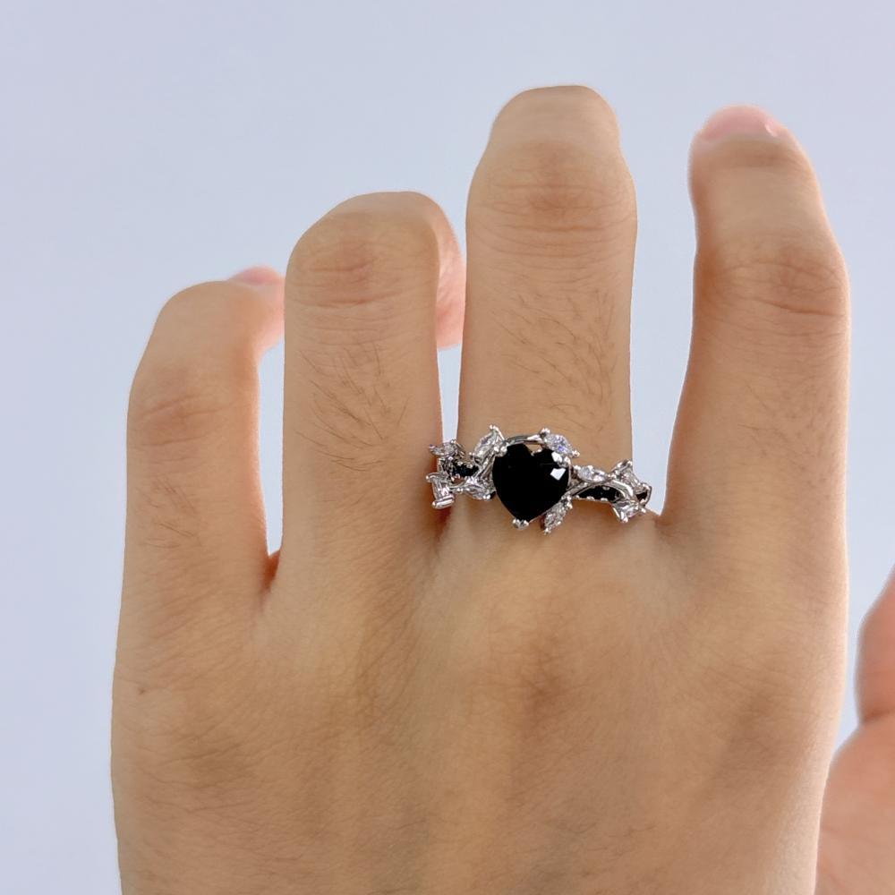 Jeulia Twisted Thorns Leaf Black Heart Promise Ring