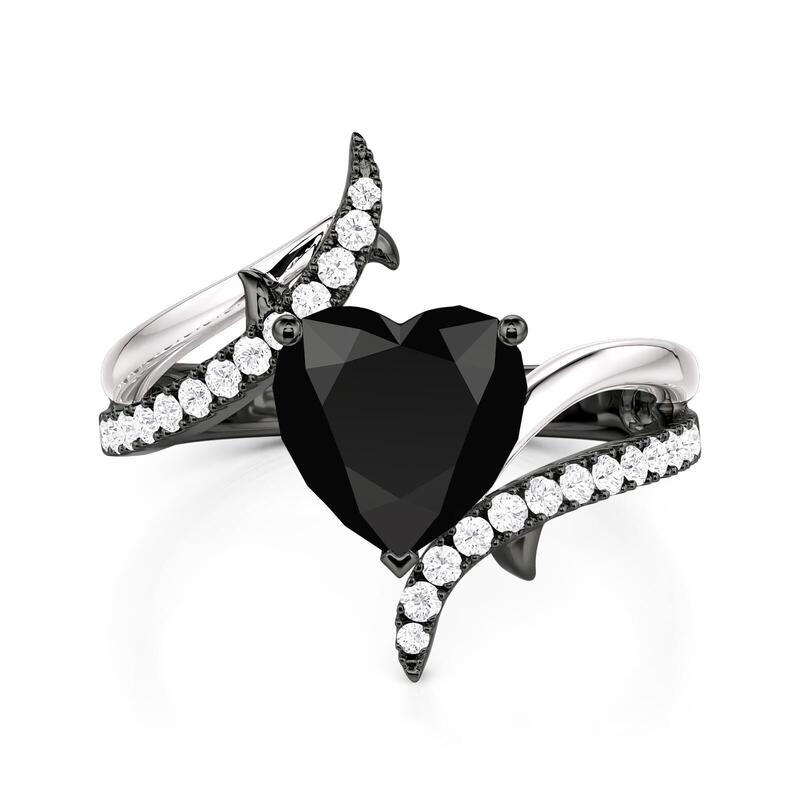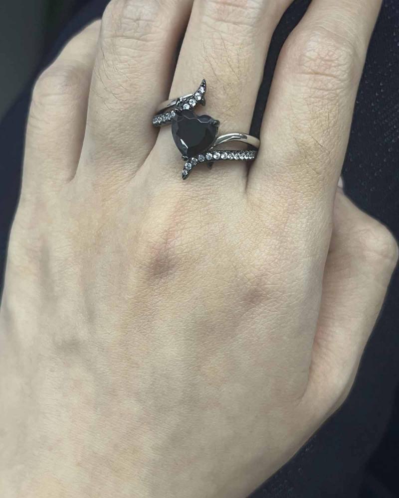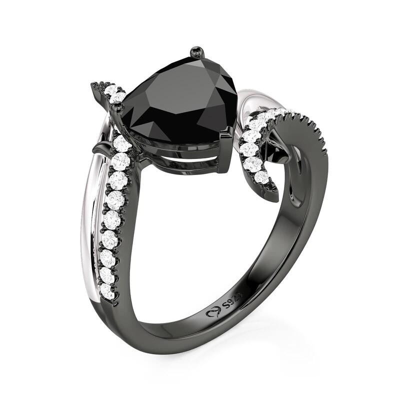 Jeulia Two Tone Bypass Black Heart Ring Sterling Silver