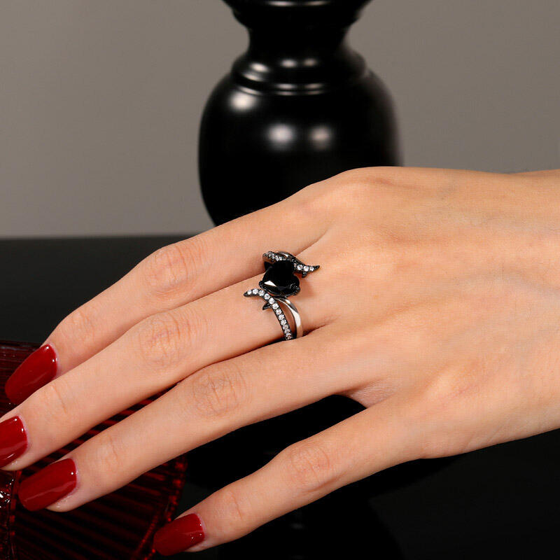 Make a bold statement with the Jeulia Two Tone Bypass Black Heart Ring. This striking piece features a captivating black heart-cut gemstone, symbolizing deep emotions and passion, elegantly set within a unique bypass design. Crafted with a stunning two-tone finish, the heart ring combines sleek black accents with radiant silver, creating a dynamic contrast that draws the eye. Sparkling stones line the bypass, adding a touch of brilliance and enhancing the ring's allure. Perfect for those who embrace individuality, this bypass ring is an ideal choice for special occasions or as a standout everyday accessory. Let the Jeulia Two Tone Bypass Ring be a cherished addition to your jewelry collection, celebrating love and uniqueness in every glance.
