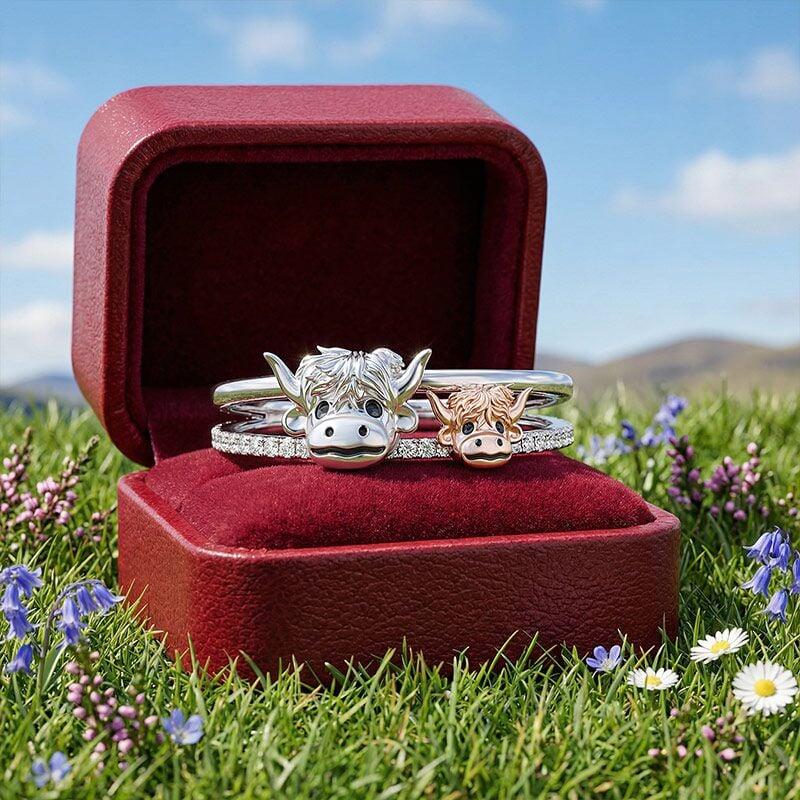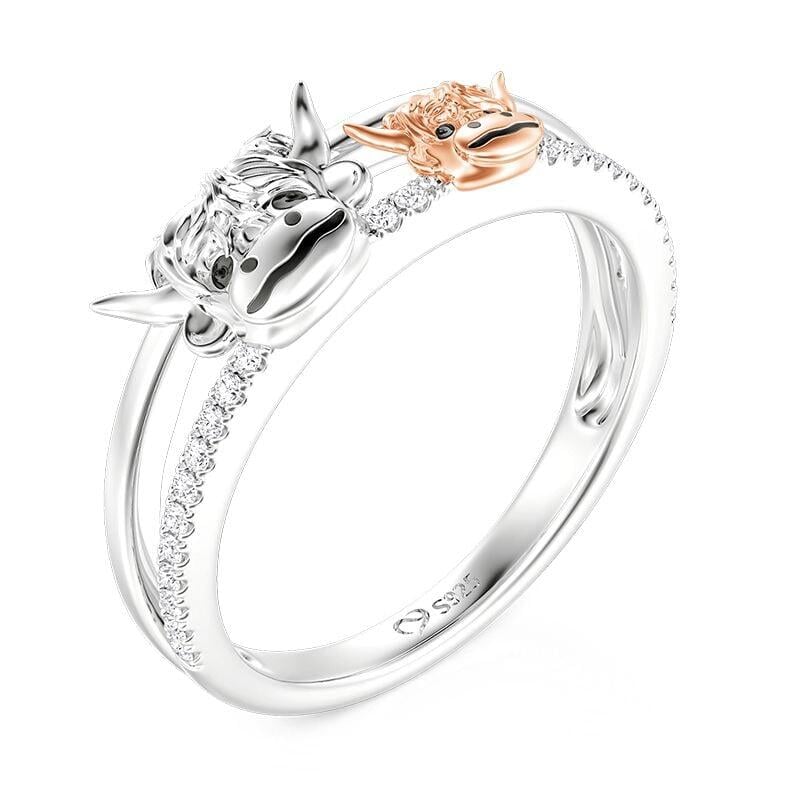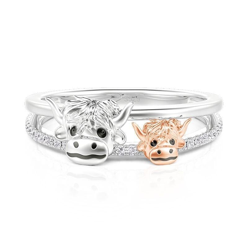 Jeulia Two Tone Double Row Highland Cow Ring with Pave Accent
