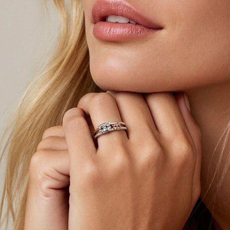 Celebrate the beloved spirit of the Highlands with this Jeulia whimsical two-tone ring, crafted in polished sterling silver and warm rose gold. Two charming highland cow motifs rest playfully atop a double-row band, their gentle expressions capturing rustic warmth and character. The lower row features a continuous line of pavé stones, adding luminous sparkle with every gesture. Blending nature-inspired charm with refined versatility, this Highland Cow ring is a heartfelt choice for animal lovers and those drawn to cozy, sentimental style.