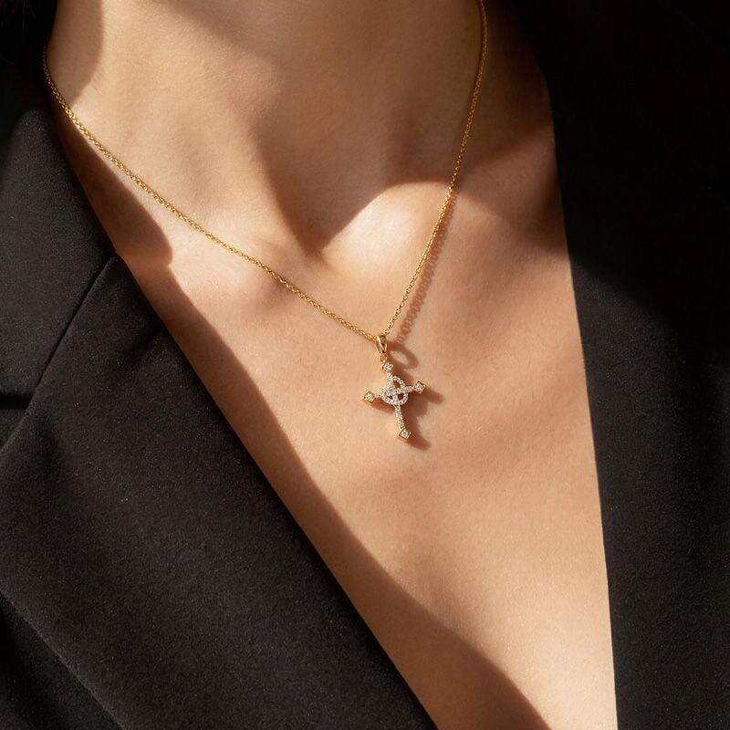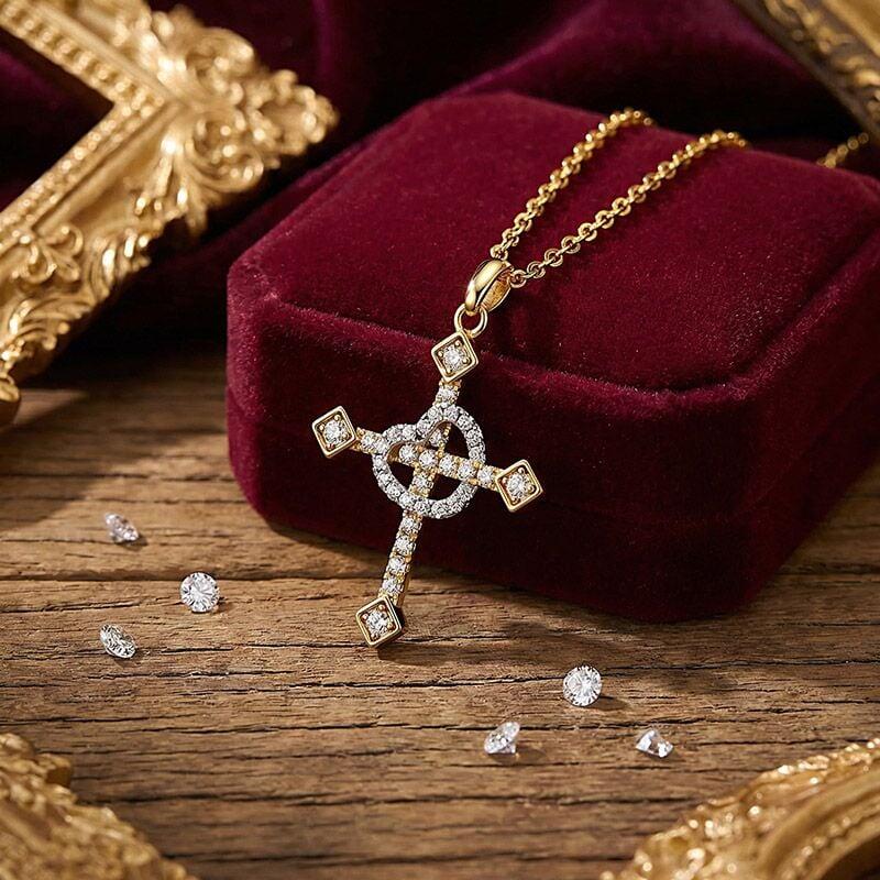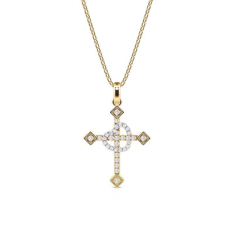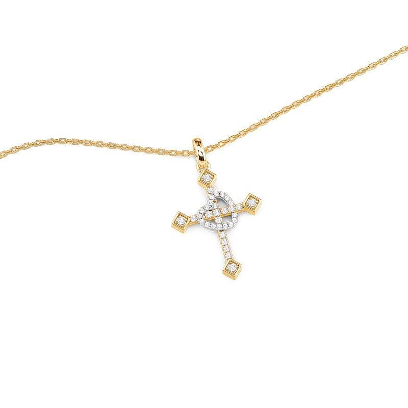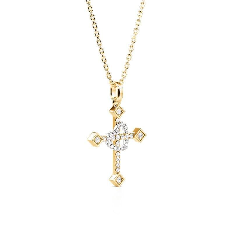 This elegant two-tone necklace from Jeulia features a symbolic cross pendant, where a delicate pavé-set heart in silver gracefully overlays a golden cross, uniting faith and love in one meaningful design. Crafted in sterling silver, this cross necklace offers a polished finish ideal for everyday wear—a thoughtful choice for expressing personal faith or celebrating meaningful occasions.
