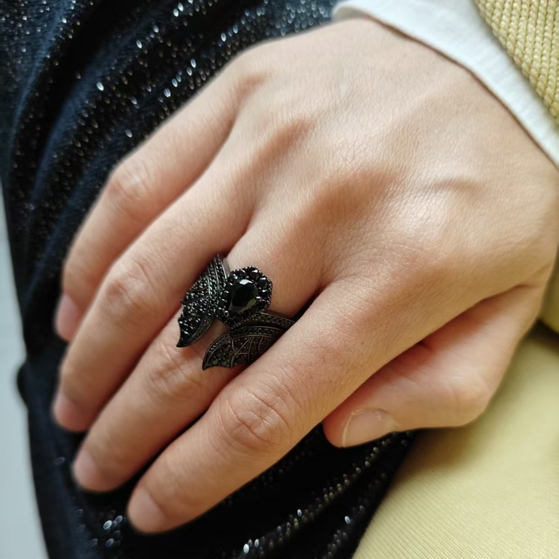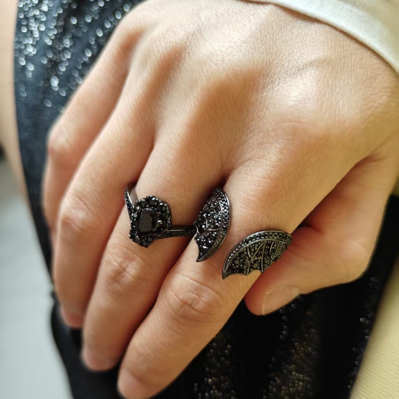 Jeulia Unique Black Bat Coffin Engagement Ring Set