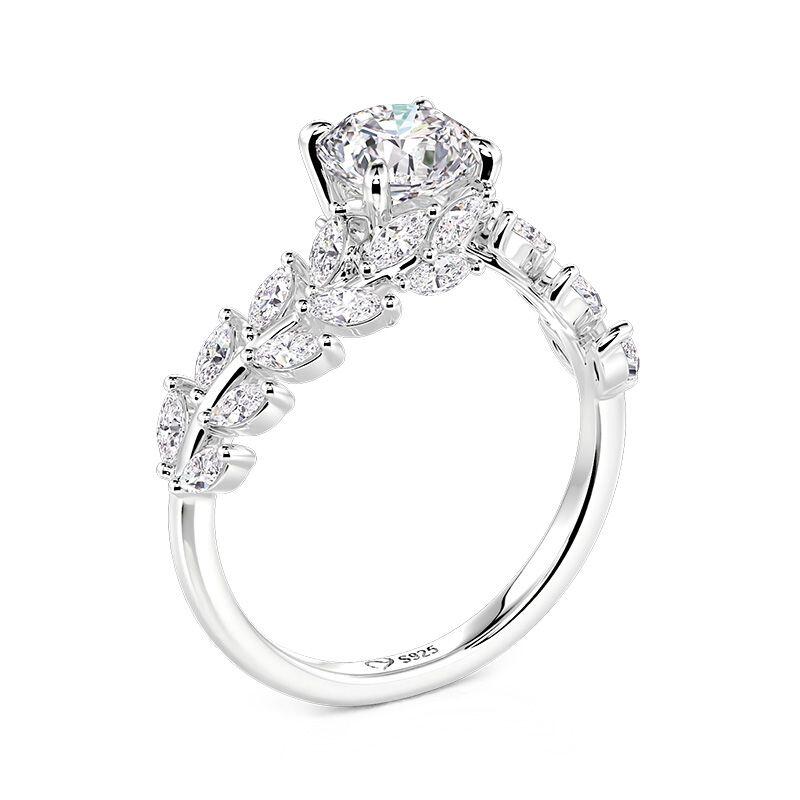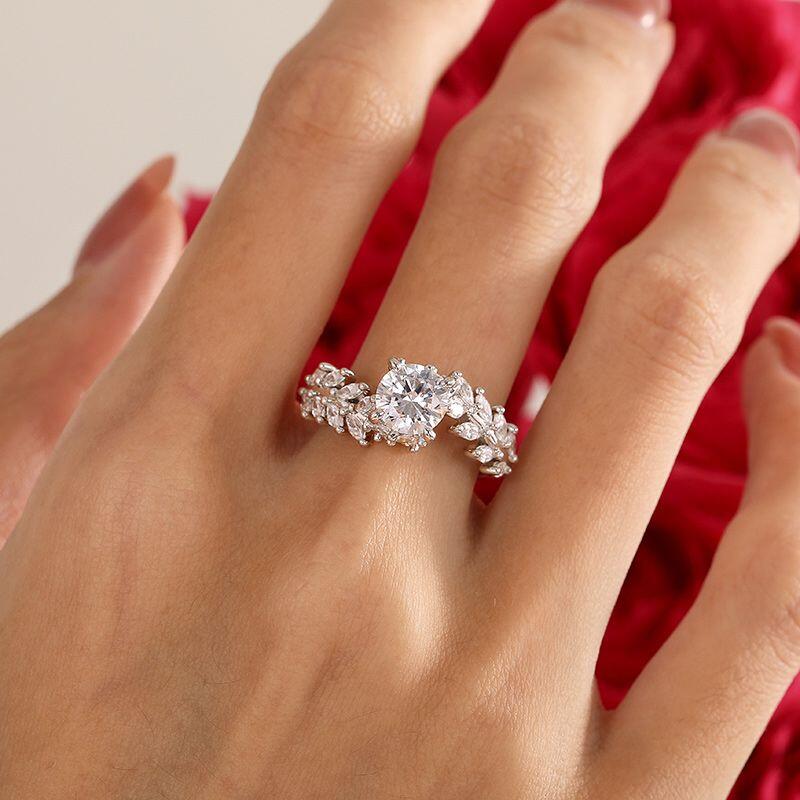 Embrace nature-inspired elegance with the Jeulia bypass vine engagement ring. This design artfully blends organic charm with refined sparkle: a bypass band gracefully twists like a growing vine, adorned with marquise-cut stones shaped to mimic delicate leaves. A bright round-cut center stone is softly framed by the winding vine motif, blending organic charm with timeless sparkle. Perfect for brides who love subtle natural beauty, this leaf engagement ring adds a touch of garden romance to your engagement while remaining polished enough for daily wear.