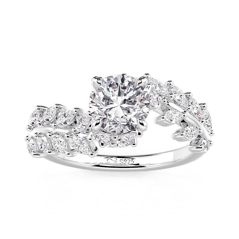 Jeulia Vine Bypass Round Cut Engagement Ring Sterling Silver