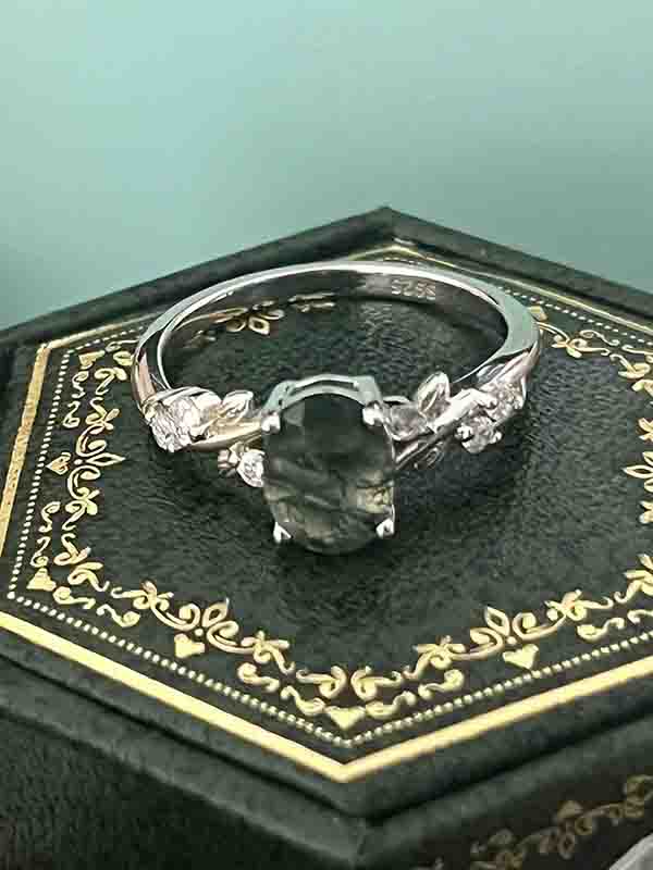 Jeulia Vine Leaf Oval Moss Agate Engagement Ring
