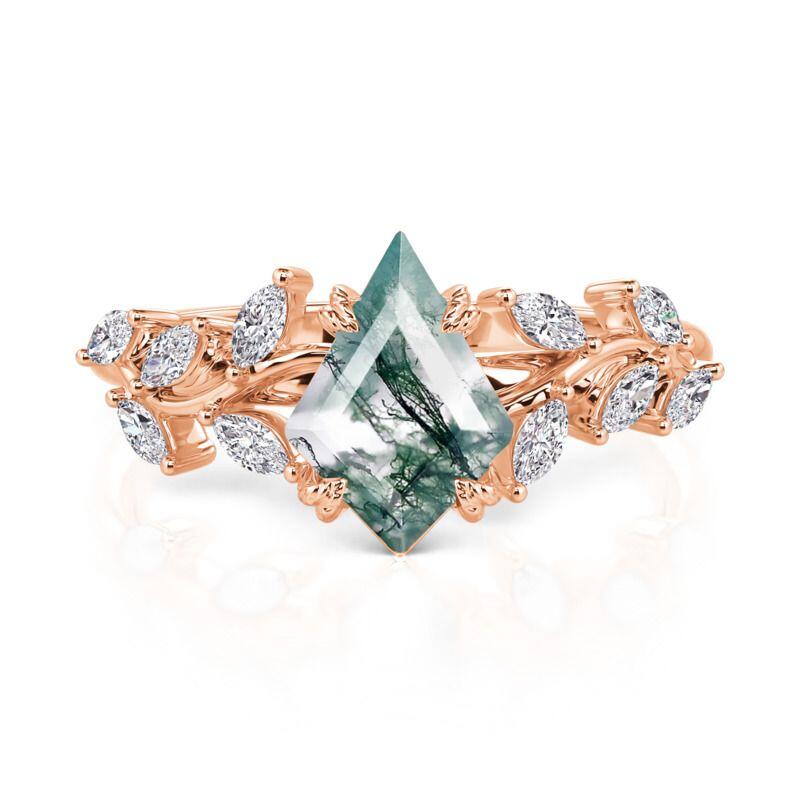Jeulia Vine Twist Kite Cut Moss Agate Engagement Ring