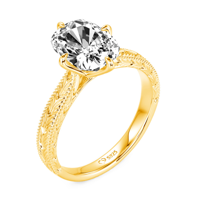Jeulia Vintage Carved Lab Grown Diamond Engagement Ring 10K/14K/18K Gold Platinum