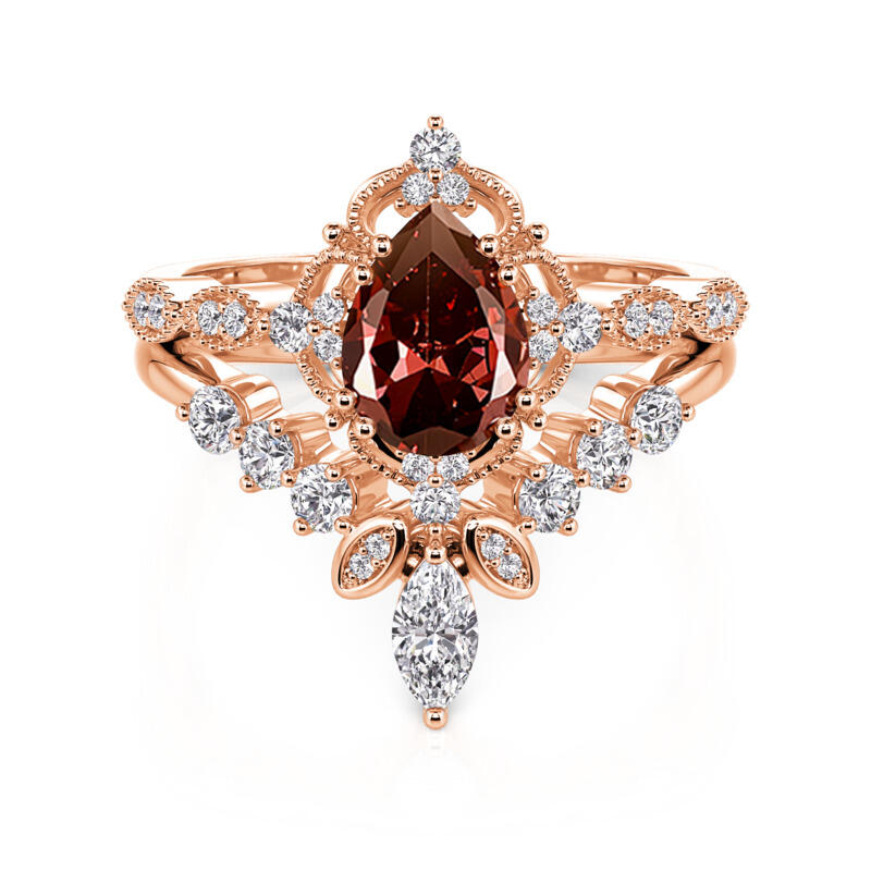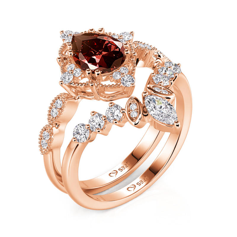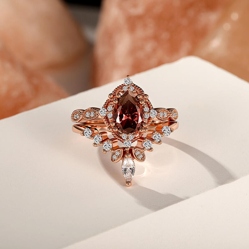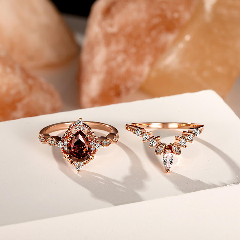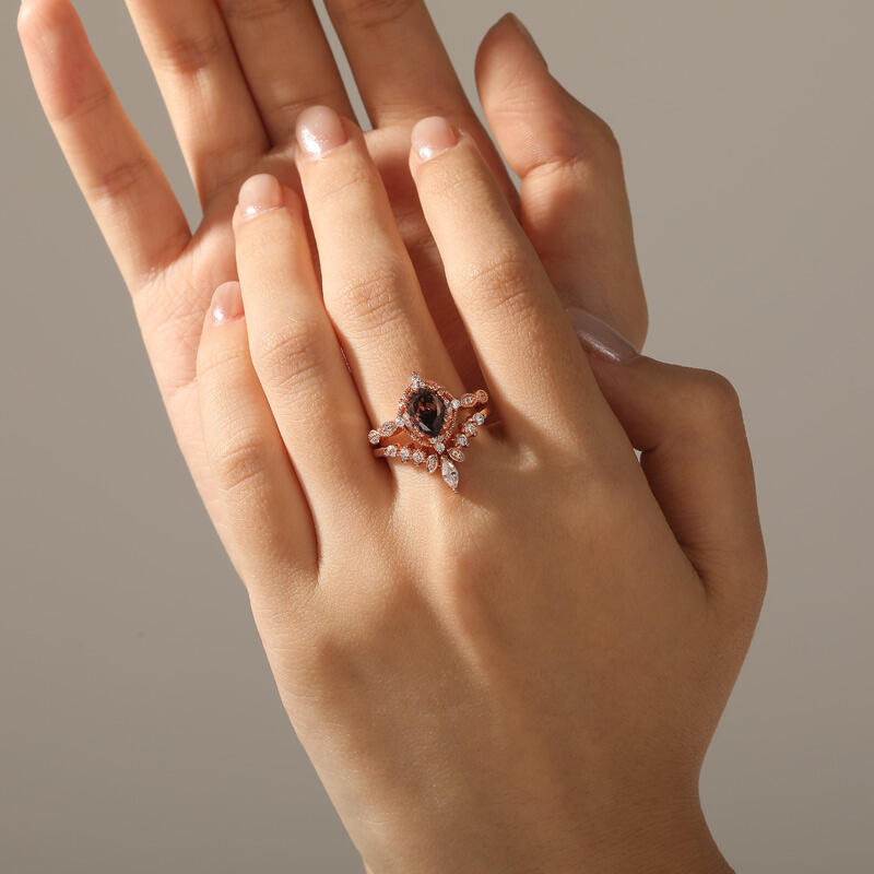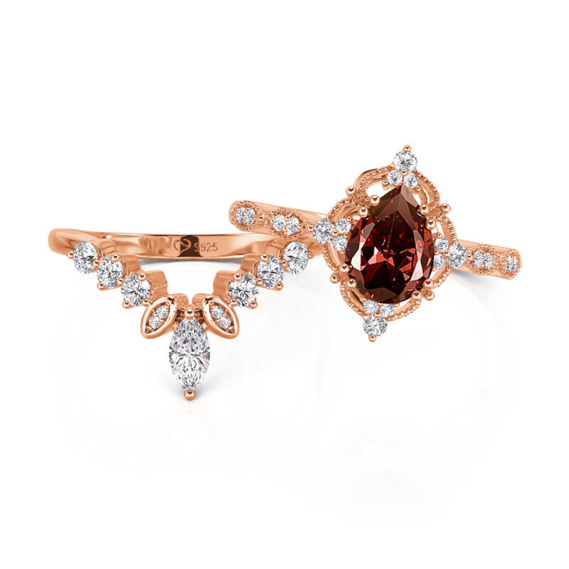 Jeulia Vintage Coffee Pear Cut Engagement Ring Set 2PCS