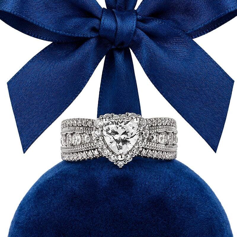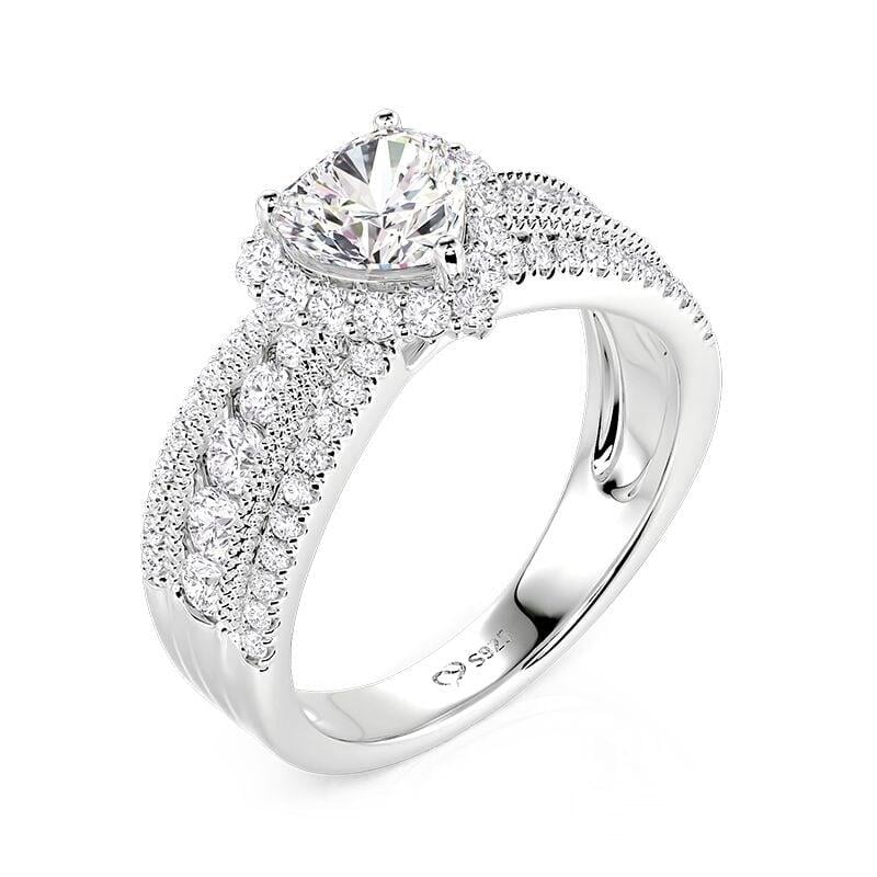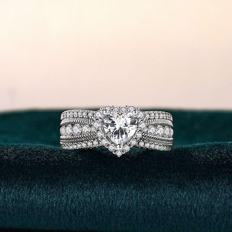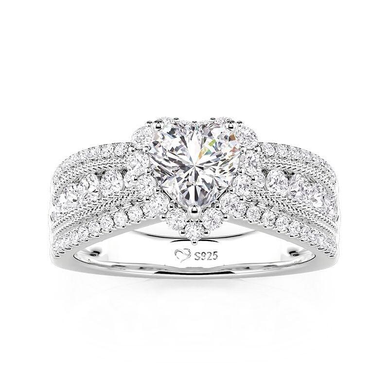 Jeulia Vintage Heart Halo Three Row Pave Engagement Ring