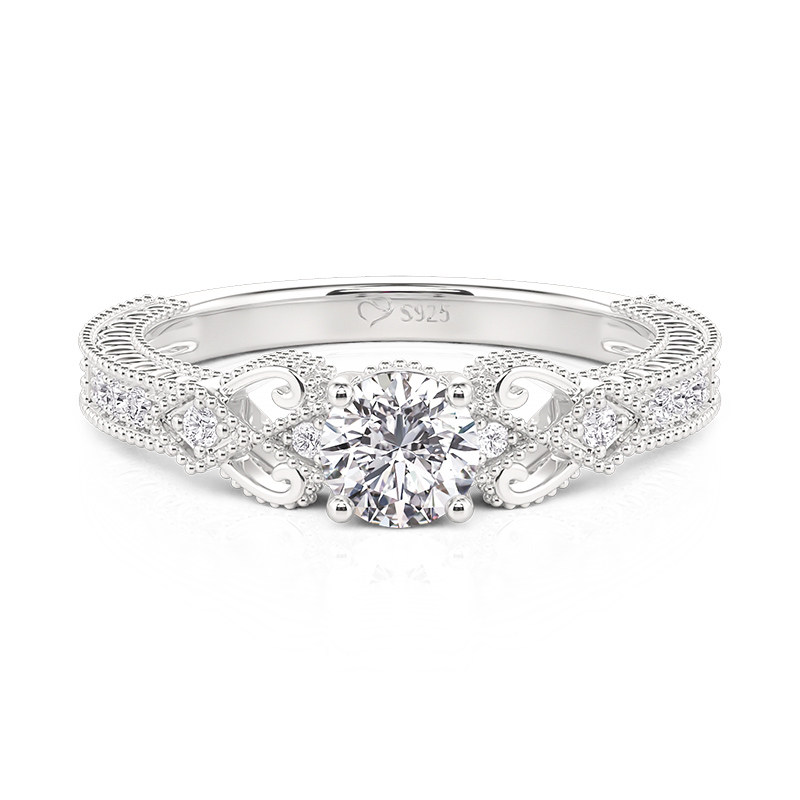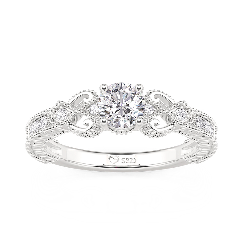 Jeulia Vintage Milgrain Round Cut Promise Ring Sterling Silver