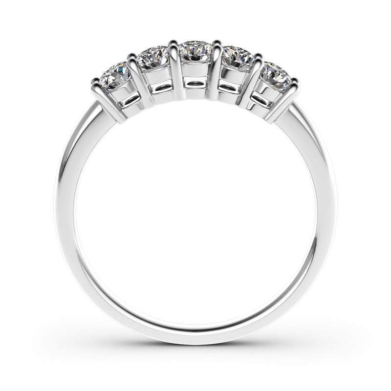 This elegant women's band is the epitome of sophistication. Five round stones sparkle perfectly from every angle, making this band an eye-catcher everywhere. Lovely alone or paired with your engagement ring, this elegant band will be cherished for a lifetime.