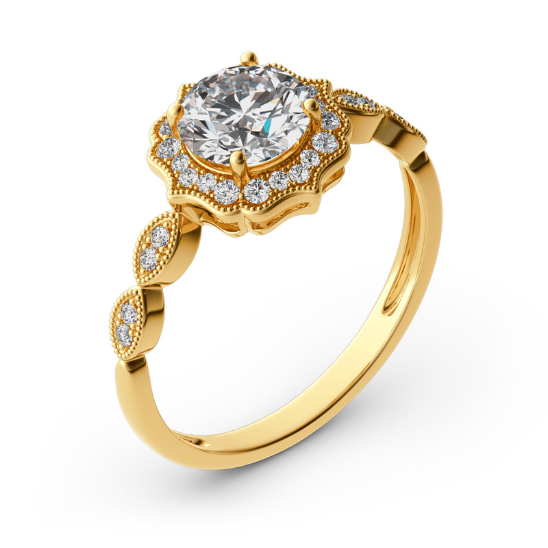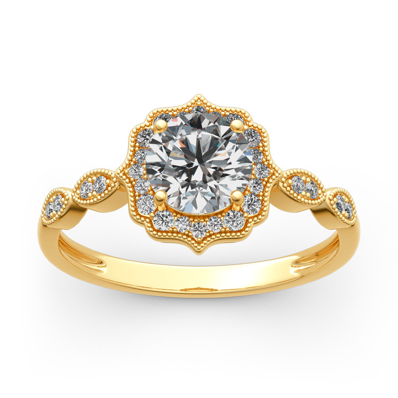 Jeulia 10K/14K/18K Gold Platinum Halo Round Cut Vintage Ring