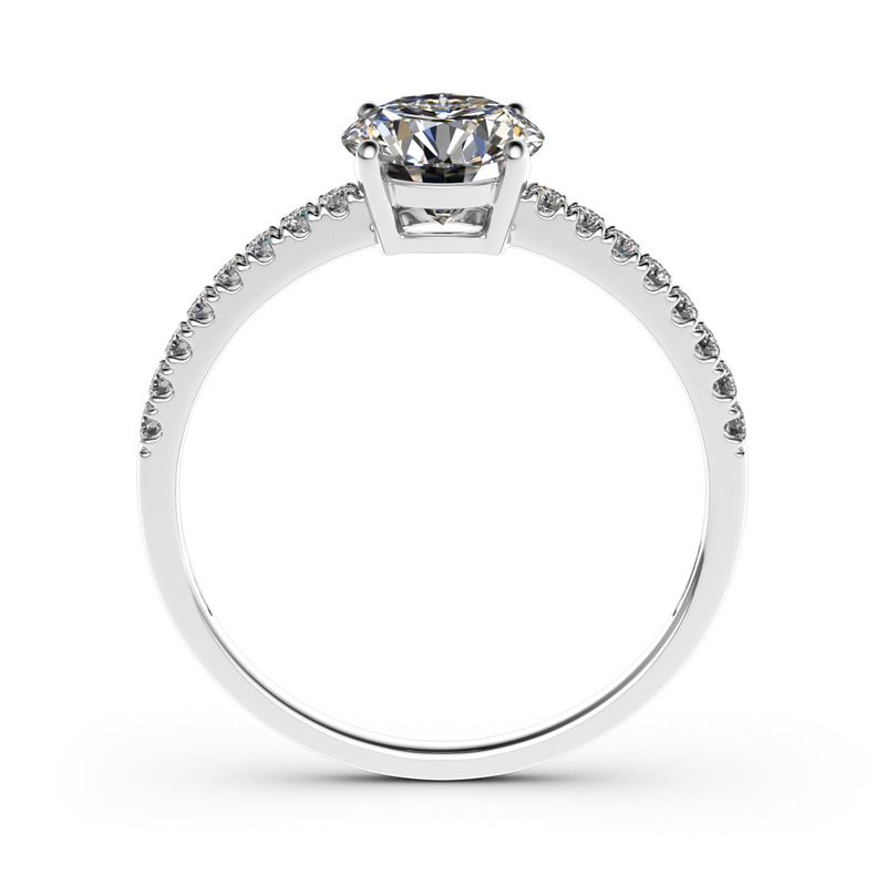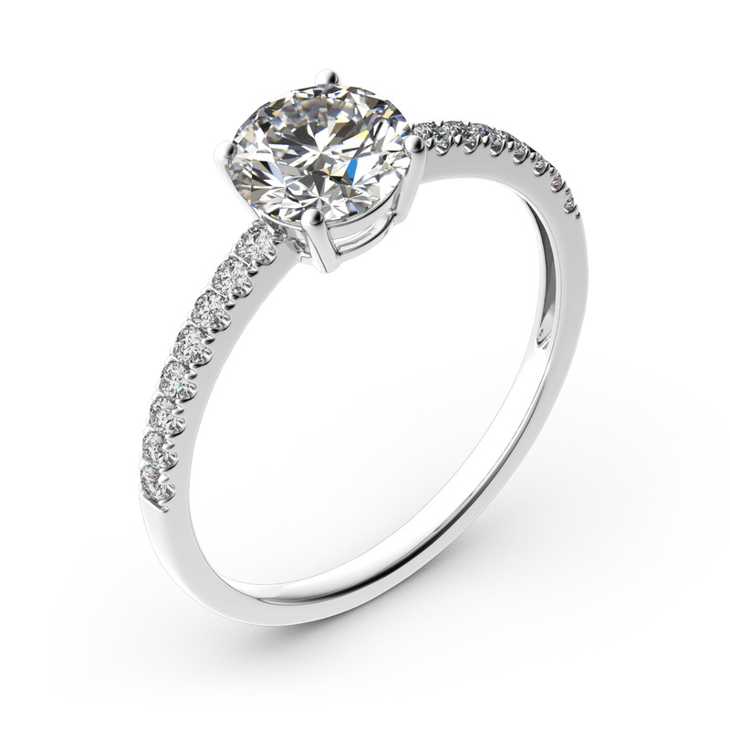 Timeless and elegant, this engagement ring is a classic look she'll adore. The eye is drawn to the round cut center stone in a traditional four-prong setting. With additional small stones on the shank, the ring sparkles crazily from every angle. Designed to take her breath away and record your love, the ring is the best choice to propose to her.