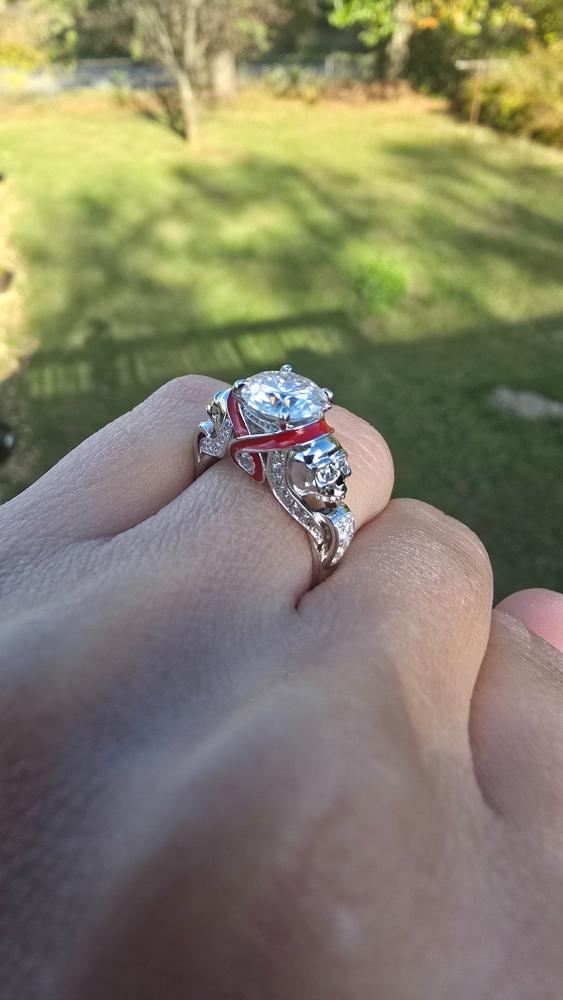Round Cut Heart Design Enamel Two Skull Ring with custom design service, you can depend on your budget to choose ring arm metal, sterling silver is suitable daily wearring, Rose gold, yellow gold or white gold, Platinum is for your important days for your honey, what's more, changable stone is good choice for surprise, you can choose colorful design online for love, for Eternal, parents, these are the most blessed things in life.