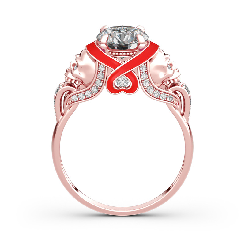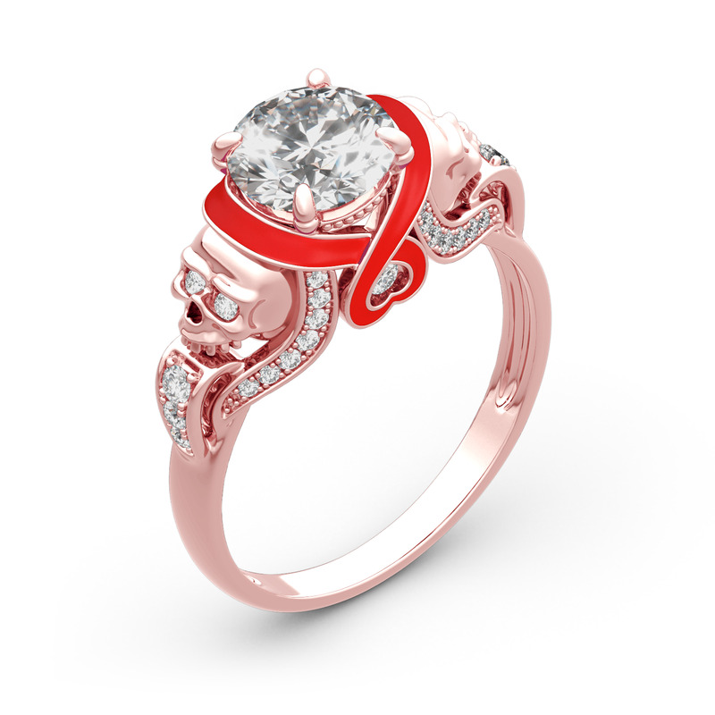Round Cut Heart Design Enamel Two Skull Ring with custom design service, you can depend on your budget to choose ring arm metal, sterling silver is suitable daily wearring, Rose gold, yellow gold or white gold, Platinum is for your important days for your honey, what's more, changable stone is good choice for surprise, you can choose colorful design online for love, for Eternal, parents, these are the most blessed things in life.