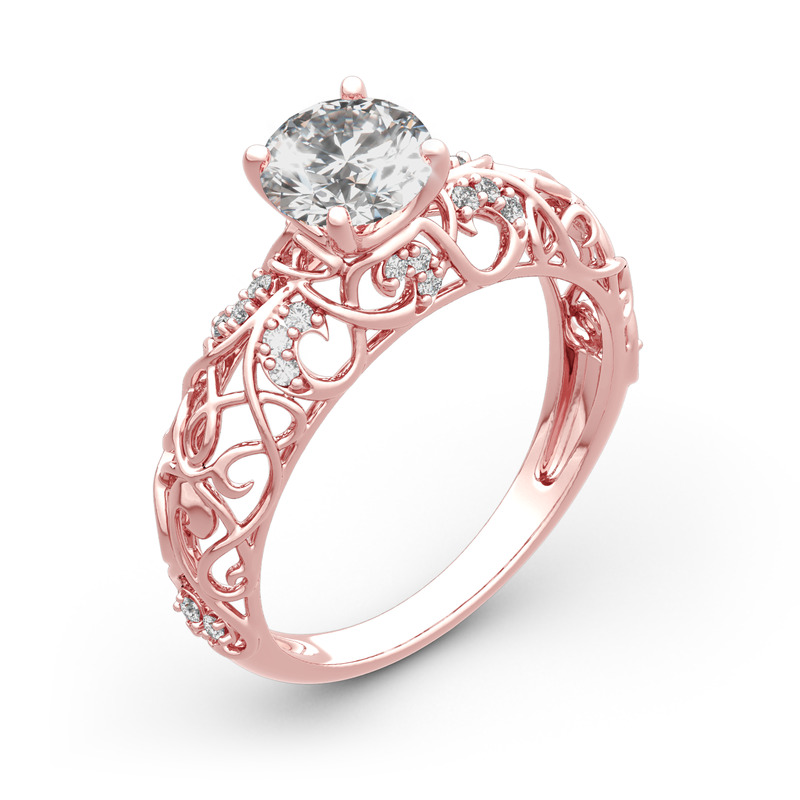 Jeulia 10K/14K/18K Gold Platinum Round Cut Vines Design Ring