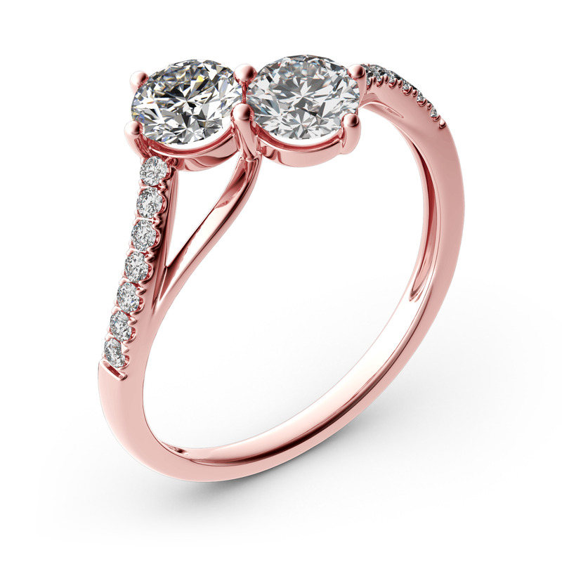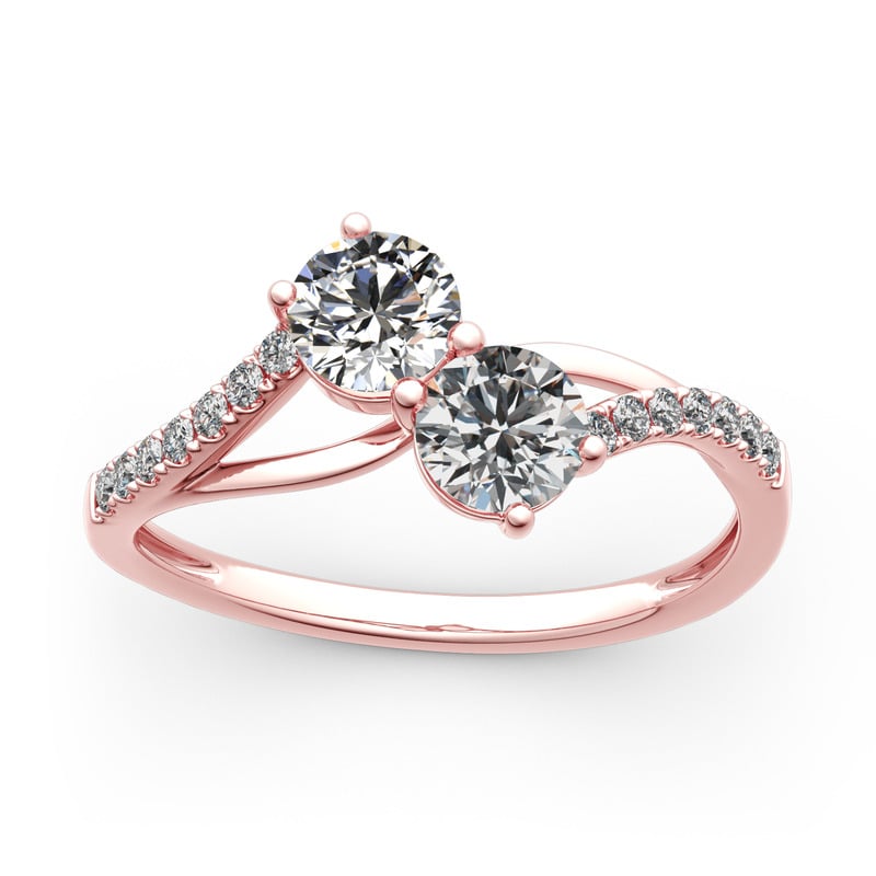 Double the sparkle, all of the beauty! This shimmering two-stone engagement ring has a special sentimental meaning within its design, the first stone represents love, the second, friendship. You're marrying your best friend, so choose the ring that best represents you! Additional shimmering stones adorn the bypassing shank for a touch of sparkle. With multiple options for personalization, this beautiful style is a perfect gift for any lady or the perfect reason to spoil yourself!