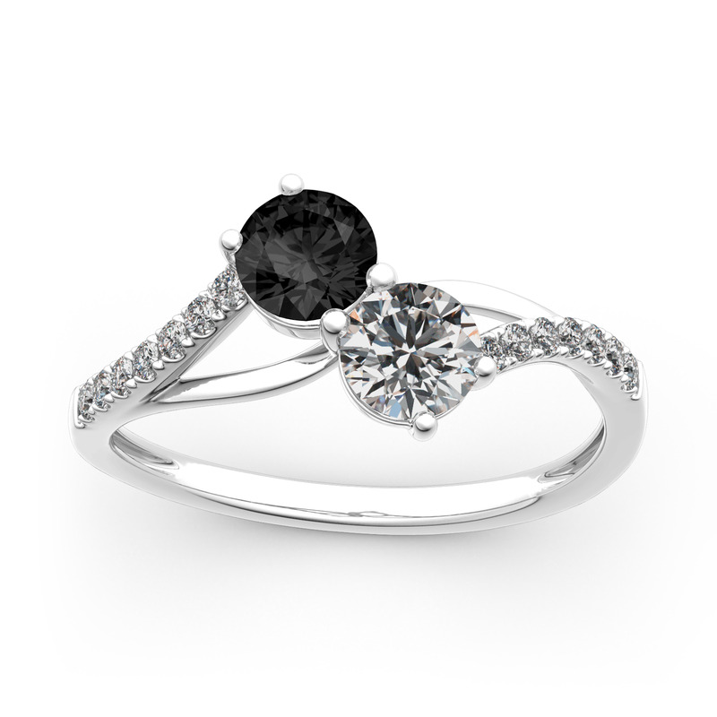 Double the sparkle, all of the beauty! This shimmering two-stone engagement ring has a special sentimental meaning within its design, the first stone represents love, the second, friendship. You're marrying your best friend, so choose the ring that best represents you! Additional shimmering stones adorn the bypassing shank for a touch of sparkle. With multiple options for personalization, this beautiful style is a perfect gift for any lady or the perfect reason to spoil yourself!