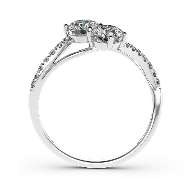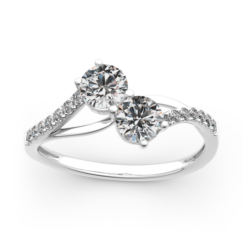Double the sparkle, all of the beauty! This shimmering two-stone engagement ring has a special sentimental meaning within its design, the first stone represents love, the second, friendship. You're marrying your best friend, so choose the ring that best represents you! Additional shimmering stones adorn the bypassing shank for a touch of sparkle. With multiple options for personalization, this beautiful style is a perfect gift for any lady or the perfect reason to spoil yourself!
