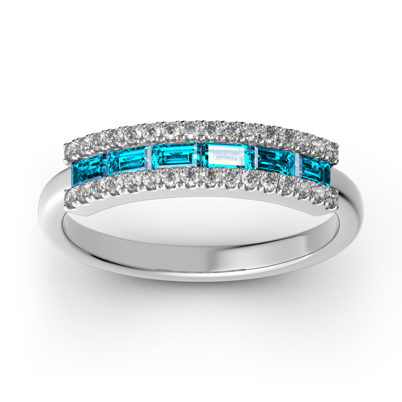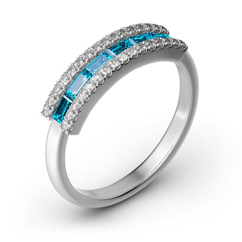 Stack this ring with your other rings to create a stylish and unique look. Expertly crafted in 925 sterling silver and you can customize the color of it and preview the look on our website. Invisible-set emerald-cut stones add spark to the simple but timeless design. Moreover, You can choose different-color stones to match the color of the metal. Is it very interesting to design your own jewelry? We have more choices for you to match with this ring. Just design a piece of jewelry to add to your jewelry box.