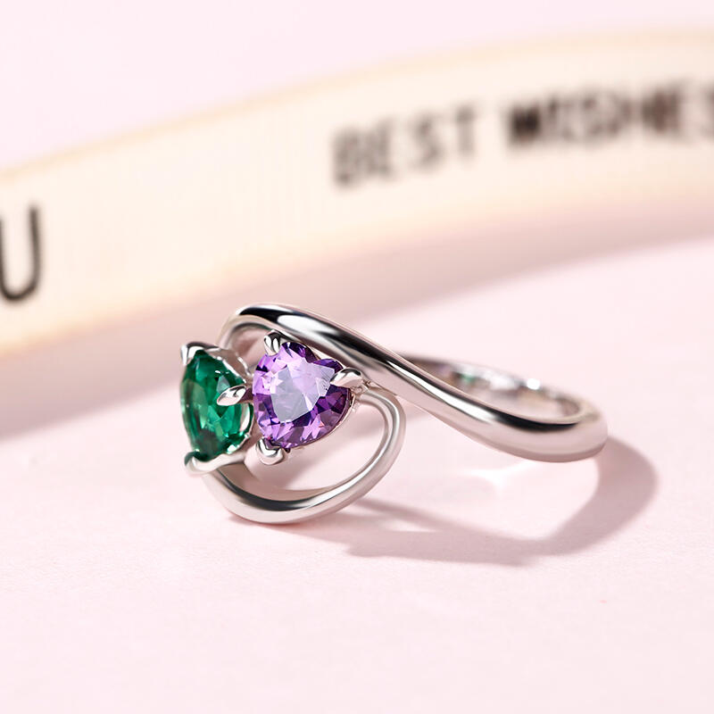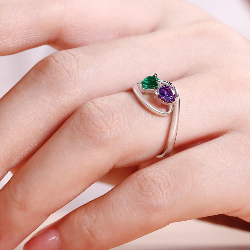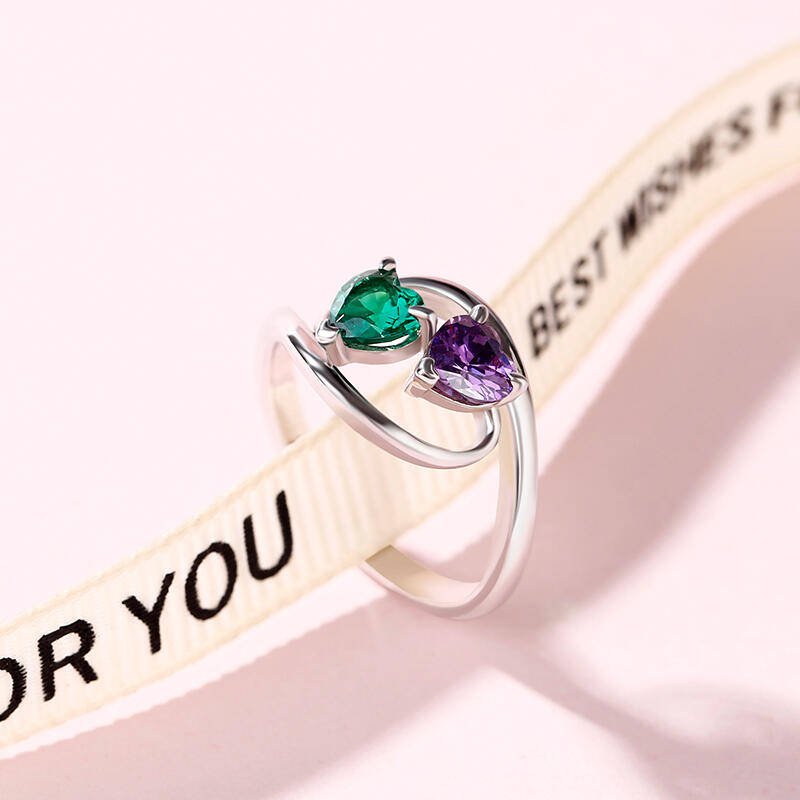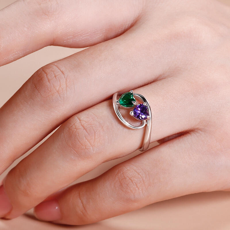 With multiple options for personalization, this beautiful style is a perfect gift for any lady or the perfect reason to spoil yourself! It features two heart cut stones at the center, and the bypassing shank wraps these stones in a sparkling embrace. An awesome look of love, this lovely rings sparkles brilliantly in any angle.