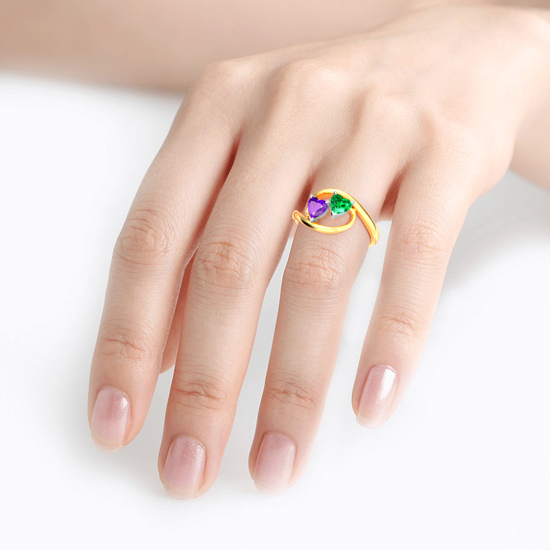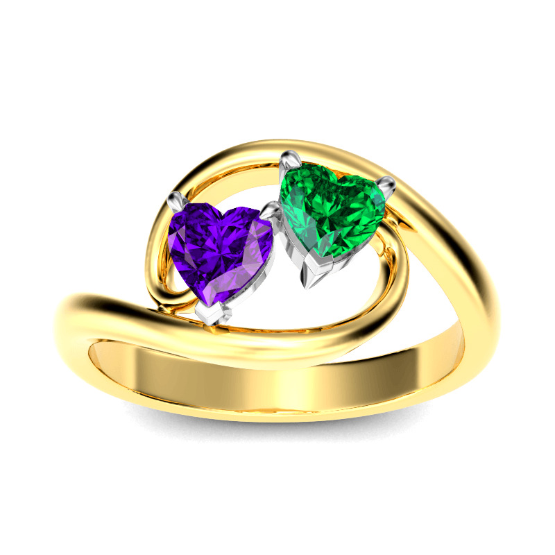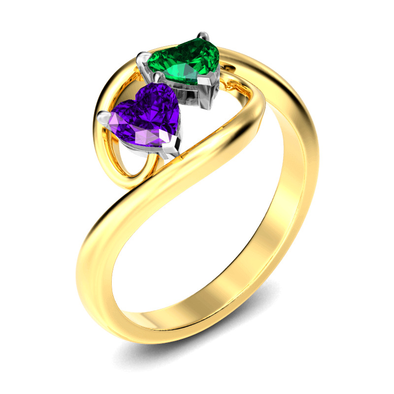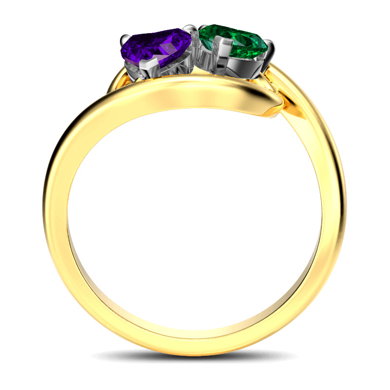 With multiple options for personalization, this beautiful style is a perfect gift for any lady or the perfect reason to spoil yourself! It features two heart cut stones at the center, and the bypassing shank wraps these stones in a sparkling embrace. An awesome look of love, this lovely rings sparkles brilliantly in any angle.