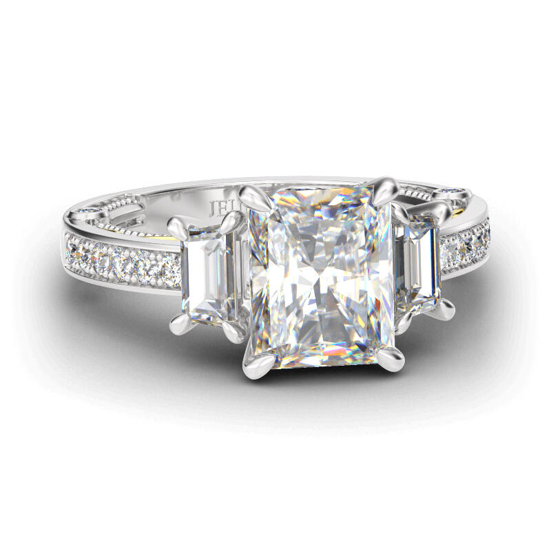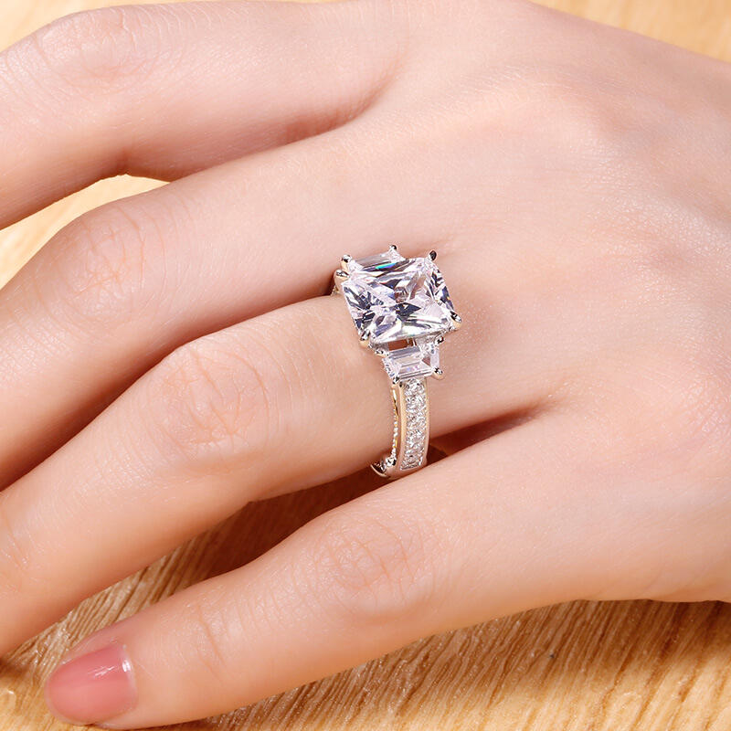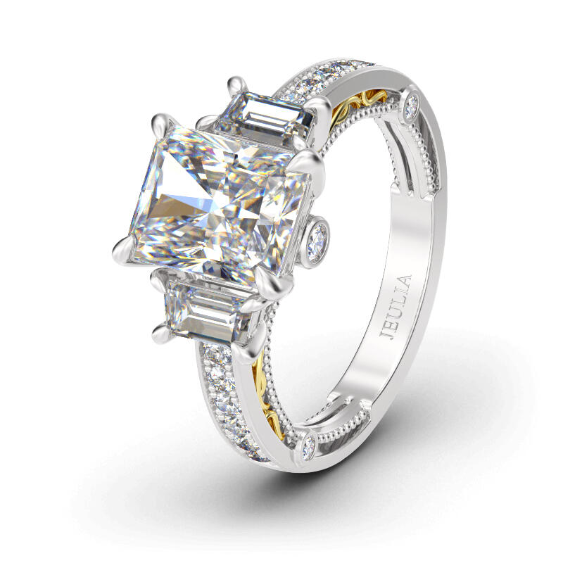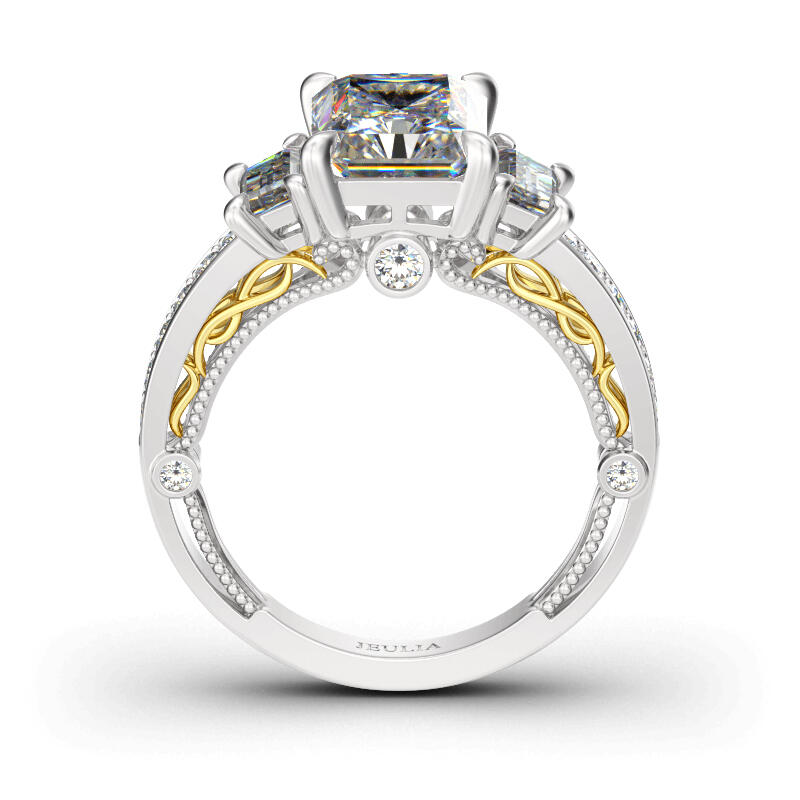 Jeulia Vintage Three Stone Radiant Cut Sterling Silver Ring
